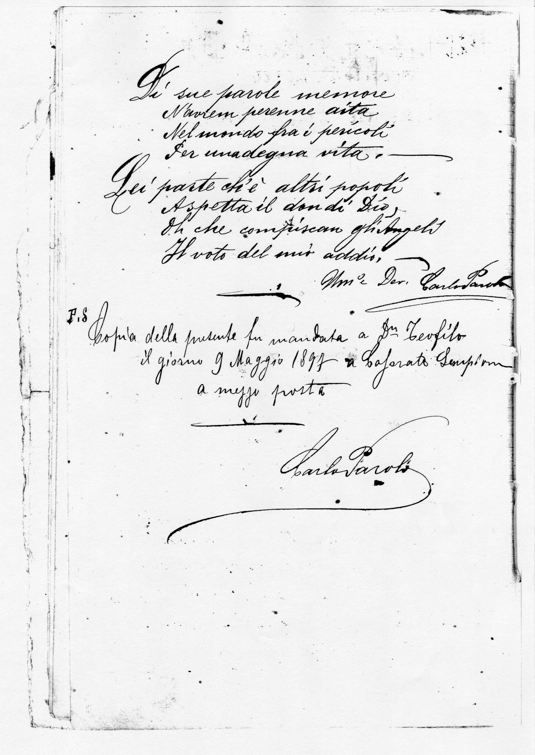 I^ lettera 9 maggio 1897