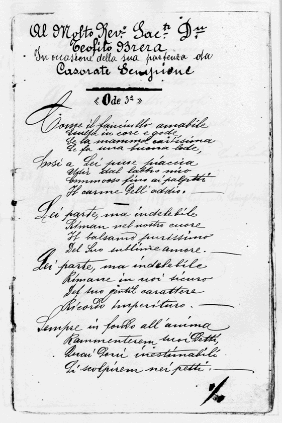 I documenti sono stati gentilmente messi a disposizione dal nipote Luigi Parolo, che ringrazio. Questi sono solo due Ode, ma abbiamo a disposizione altri scritti.
