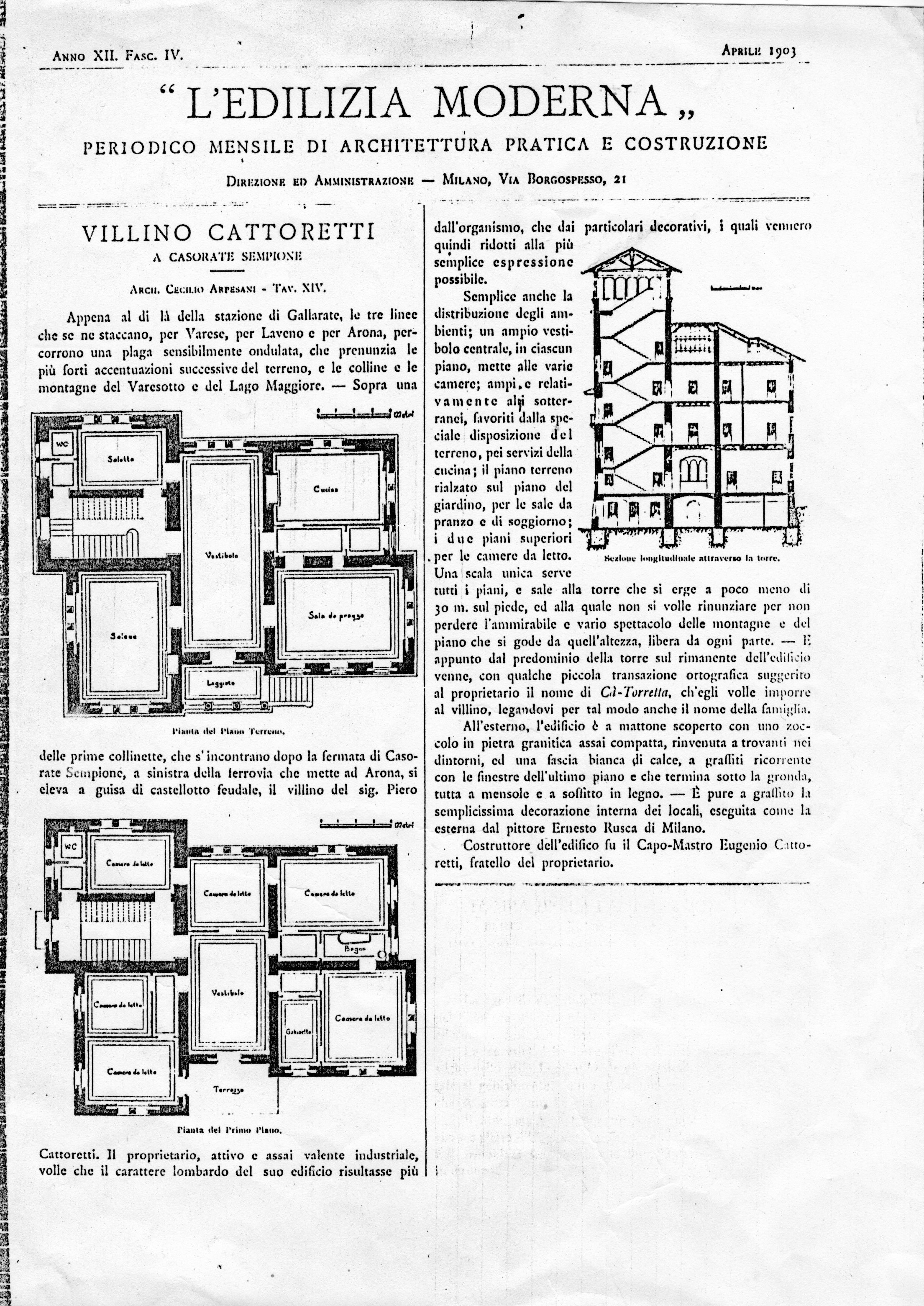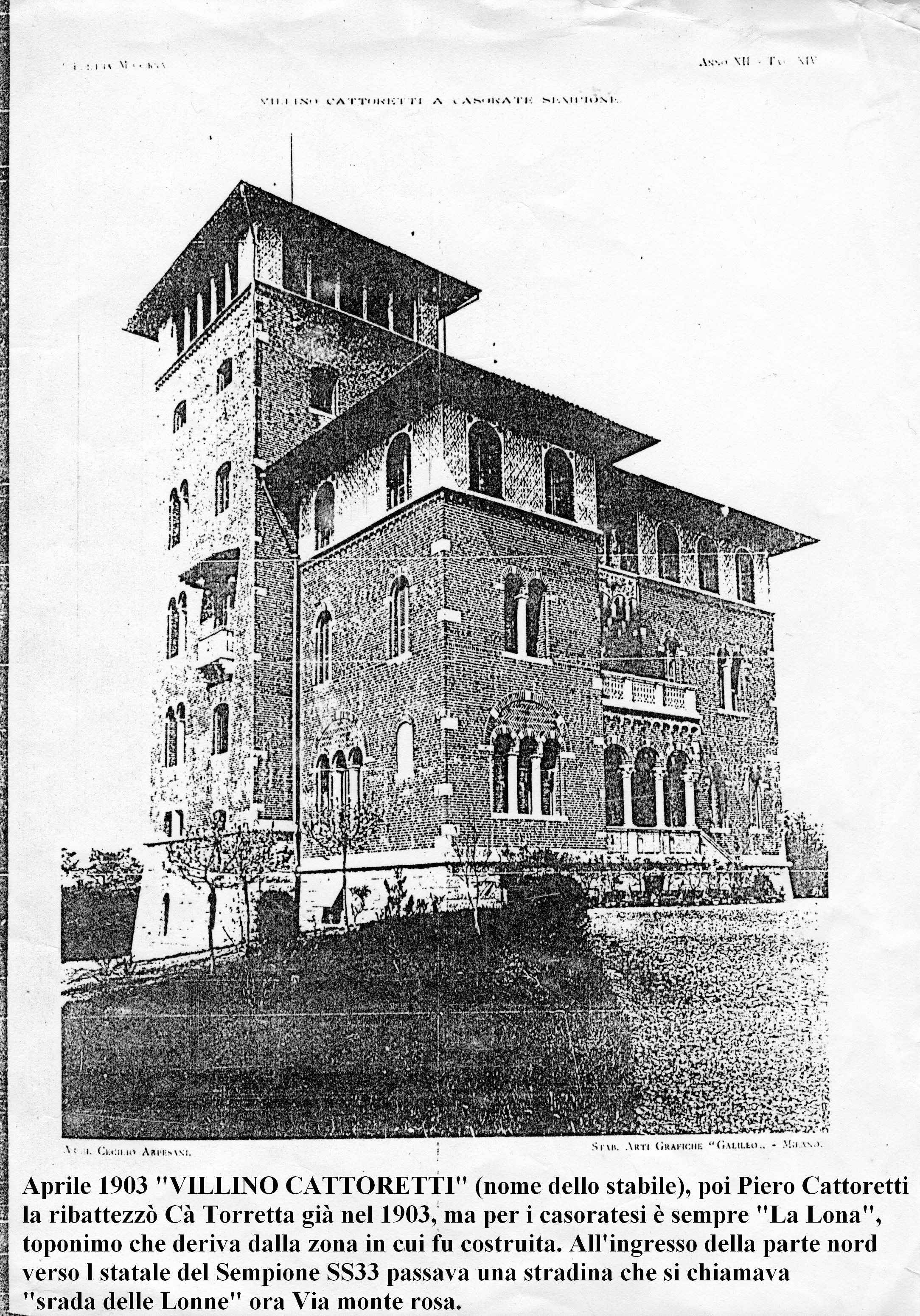 Progetto originale "VILLINO CATTORETTI" poi dal 1903 "Cà Torretta".