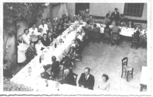 Nella foto: (per gentile concessione di P. Luigi Milani - matrimonio della figlia dei proprietari 1944) cortile interno dove si poteva mangiare all’aperto, mentre nel salone adibito a sala da ballo, molto più capiente, si potevano tenere “banchetti” di sposalizi o altro, con molti più invitati. Di questa “gatta”, mi è rimasto un ricordo particolarmente bello perché tutti i clienti abitudinari (io lo ero da poco), avevano tra loro un rapporto di “vera” amicizia che non riscontravo in altri ritrovi pubblici di Casorate.