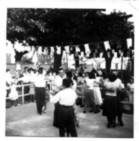 (nella foto di redazione: la prima festa "popolare"del P.C.I. del dopoguerra, la balera è piazzata dentro il giuoco bocce del "48").