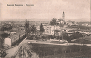 Péþa : ora volgarmente chiamata “ la péþa “ . Ex piazza Carducci (punto di partenza della “famosa” “Curiera”) incrocio di Via Milano (ex Corsia dell’Oratorio) con Via Como (ex Strada Comunale della Fontana) e Via XXV Aprile (ex Strada Comunale di Ronco e Ravanaccio). Nella foto: (di sinistra ediz. Porrini anni 20; la “péþa” vista dalla villa "Cattoretti—Rotolo", in centro a sinistra la pesa Pubblica, eliminata nel marzo 2002 (ora ne rimane solo il localino per la pesatura). Alle spalle il Circolo Combattenti, a destra, la casa che fa angolo, il “cafè” (caffè, poi trasferitosi in Via Torino), in alto a sinistra la Ca' Torretta, sullo sfondo il campanile (notasi un solo orologio verso il vecchio Municipio). Non si può non notare la mancanza del bacino (esisteva solo un “serbatoio” costruito nel 1913/14, molto basso che alimentava quelle poche famiglie in cui c'era già l’acqua potabile).