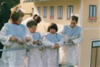 Foto di destra, il grambiule dei Civąsch in primo piano, la seconda bambina da destra (la pił piccolina che guarda l'obbiettivo) č la pronipote dell'autore della canzone dei Civąsch e Paulģtt Iglio Rodoni.