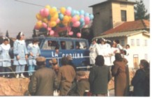 Sfilata dei carri di carnevale del 7 marzo 1987, il carro č stato ideato dal rione Sempione in collaborazione di volontari di altri rioni, la "stilista" delle divise dei "Paulģt e Civąsch" la signora Adriana C. Alla guida della "curiera" il signor Pierino C.