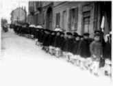 Bambini dell'asilo di "civąsch" e "paulģt " I "Lüižit "davanti, al seguito la "la schra di óm"